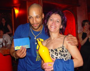 Dîner de filles au Monte Cristo Jeudi 11 mars 2004 13. Les hôtesses ne sont jamais en reste 14. La gagnante de la célèbre bouteille dessinée par Garouste & Bonetti 15. Mario, Isabelle et André