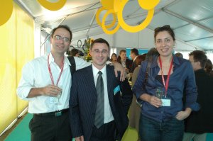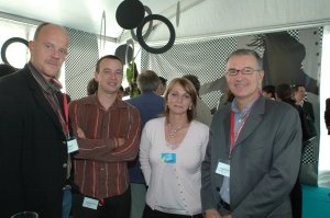 Anniversaire Goss Sérigraphie Jeudi 22 septembre 2005 Carine Vallin (Zigzagone) M. Ravelet, Pierre Chazalette (Strada), Céline Gava (ATC) et Michel Morillon (SFR) Equipe Goss