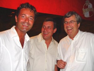Guinguettes en goguette 9 au 18 juillet 2004 31. Philippe Vorburger choisit avec l'aide de Laure un Tee-Shirt... 32. subversif ! 33. Eric Amsellem (Costabianco), Guy Deroover (Goldy les montres) et Denis Bodhuin (La Part Dieu)