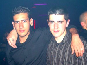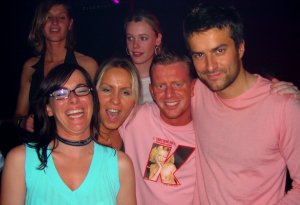 Pink Party du Bus Café au Titan Vendredi 7 mai 2004 31. William et Matthieu 32. La nouvelle équipe du Bus Café autour de son boss Benjamin Lavorel au Tee-Shirt évocateur 33. Benjamin (Bus Café) et Antoine